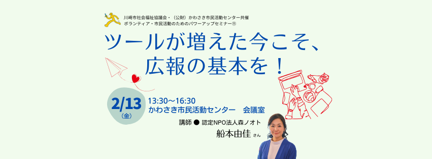 この講座では、NPOに必要な広報の土台を整理して、活動や想いを“きちんと届ける”ための広報の基本を学び、明日からの情報発信に活かせる視点をお伝えします。